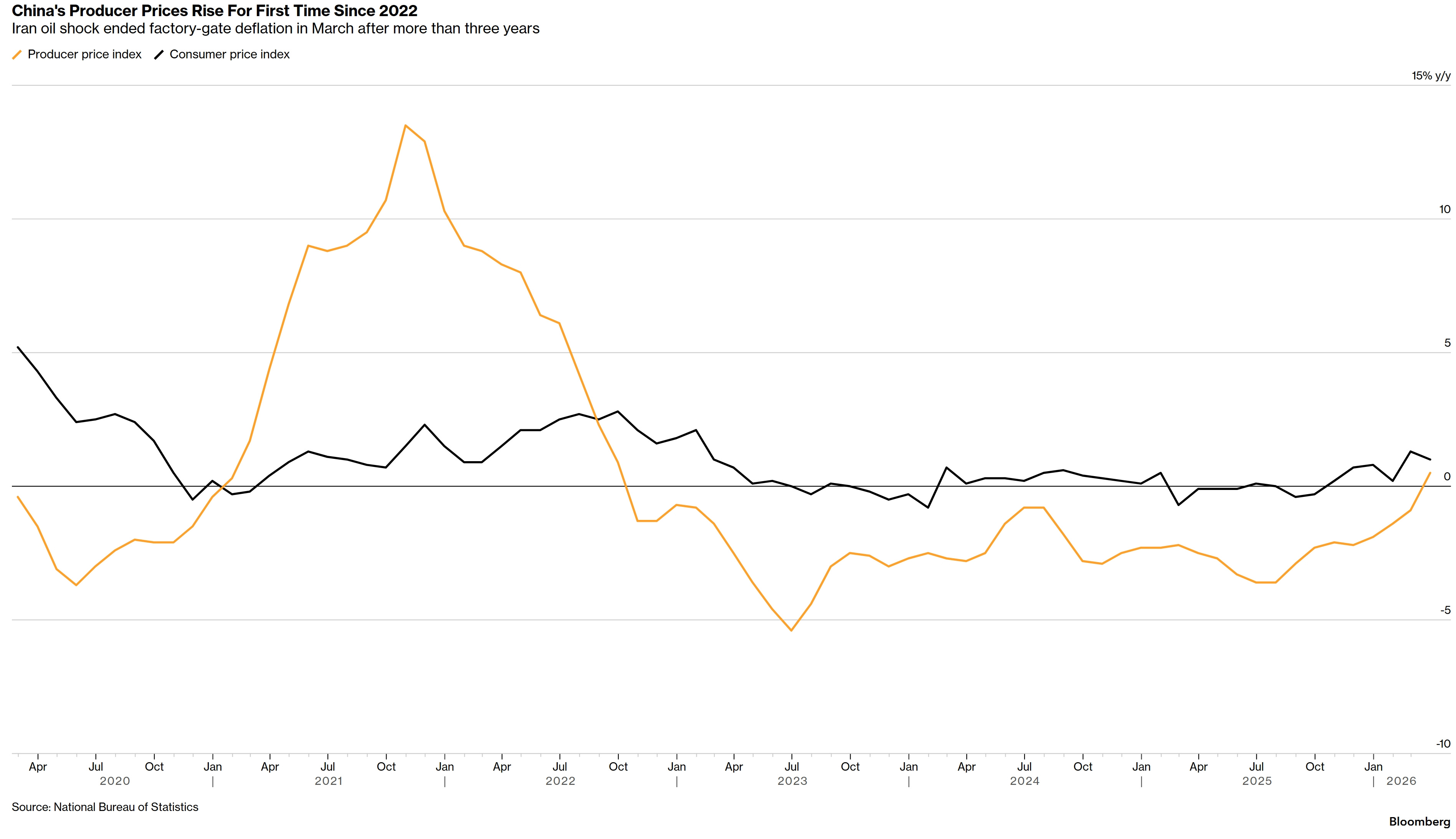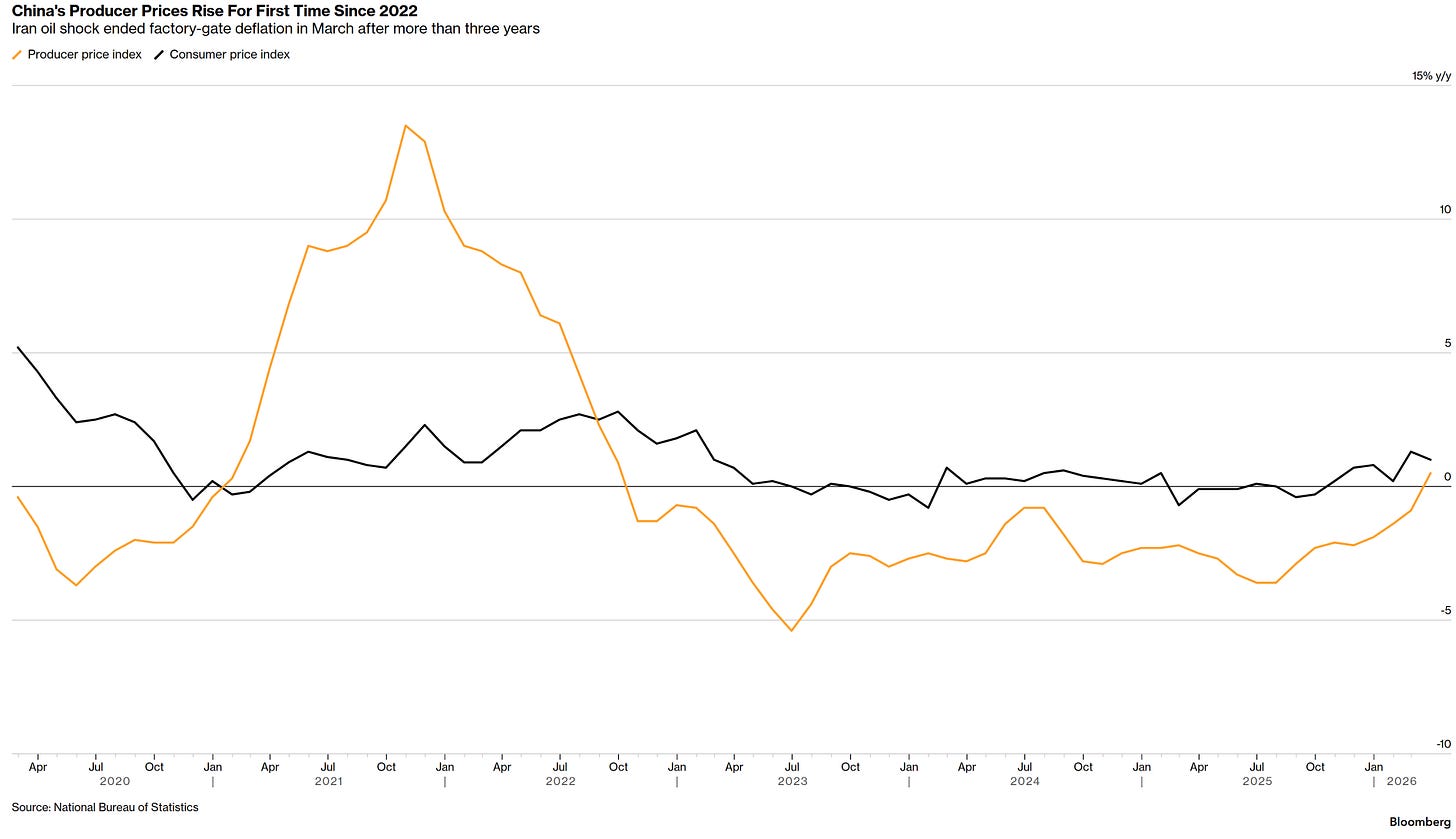 Producer prices in China are starting to pick up, the spillover effect of it will be materialized in the rest of the world in the next quarter, this implies a ~3% global uptick of inflation next quarter.