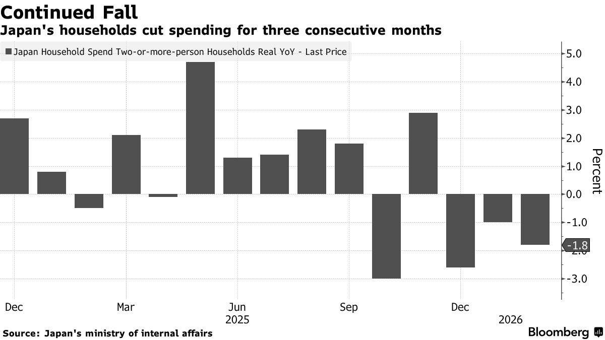 The Japanese economy is facing stagflation, there are sings of wage price spirals going on in Japan, with mixed signals in regions of Japan but clear message in wages. Japanese households cutting spending suggests growth concerns that should be addressed by government tax cuts, I expect rate hikes.