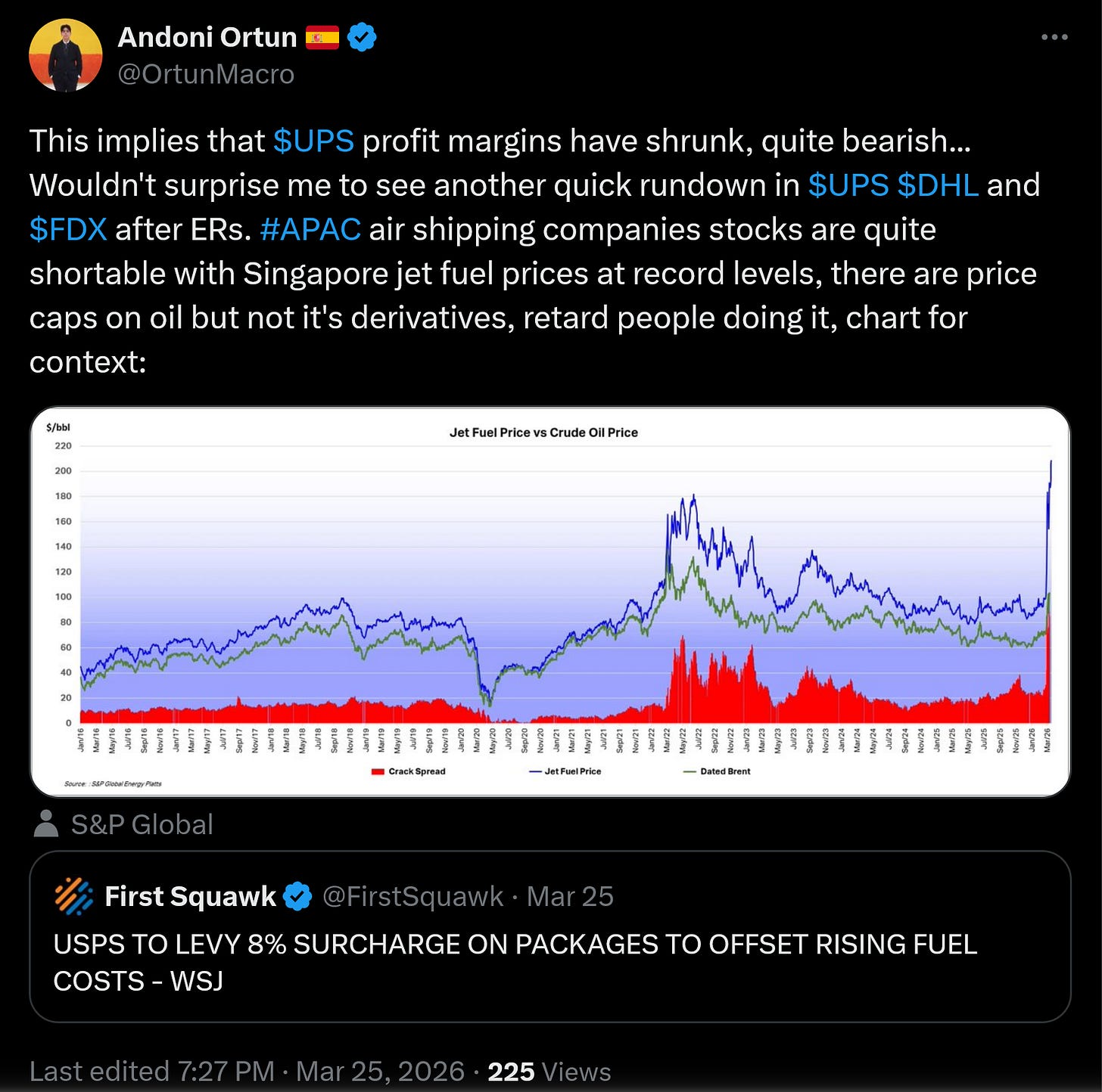 The play over the region is long energy, short airlines given increase in jet fuel prices.